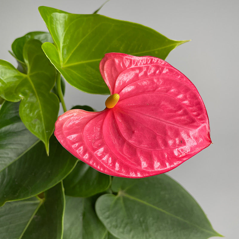 These stunning Anthuriums not only have beautiful foliage but also produce striking pink long lasting flowers.