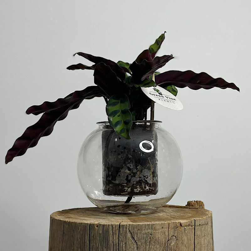 Calathea Rattlesnake in Medium Self Watering Glass Pot