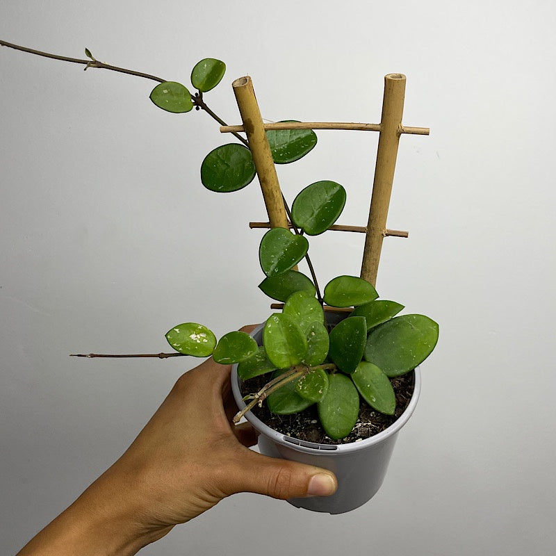 Propagation - Hoya is fairly easy to propagate, but can be on the slow side. You can cut the stem either side of a leaf keeping the node, and sit the stem in water to grow roots in a well lit spot. Once the roots have grown a bit, the rooted cuttings can be potted up into soil to continue to grow. Best to prop in warmer months for best results.