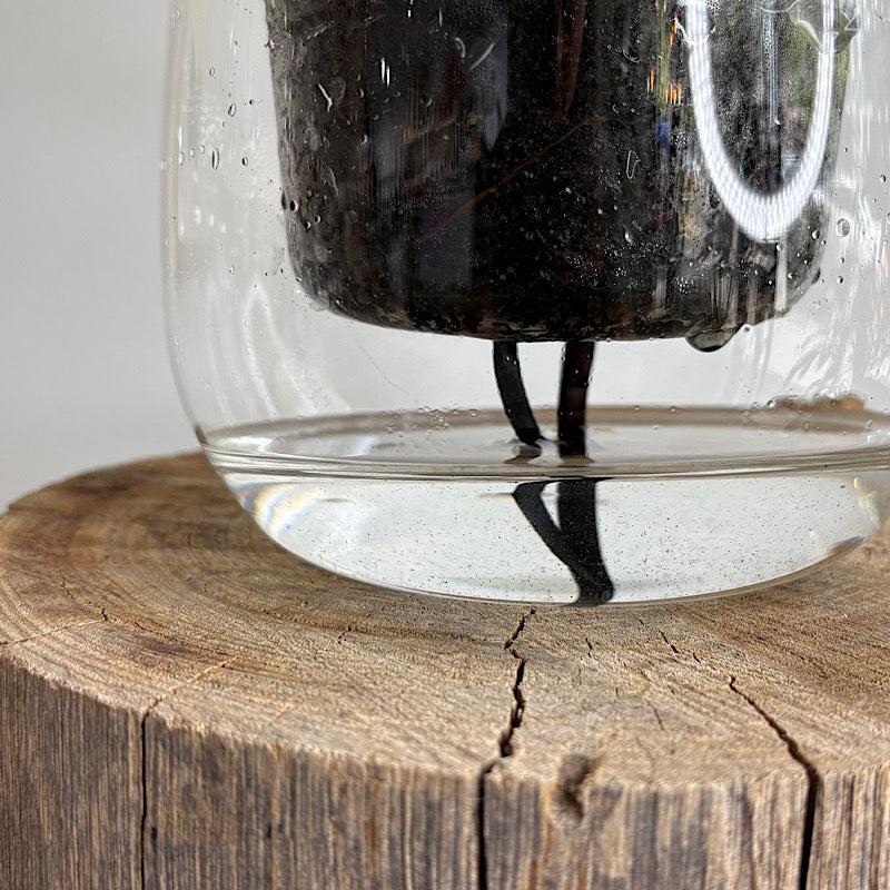 These award winning glass self watering pots are amazing for your indoor plants that enjoy a bit more moisture in their soil. The see through glass means you can see the water levels clearly, as well as root grown in the soil. It still presents like a beautiful vase with their elegant design. The inner cup comes out for ease of planting, cleaning and handling, and includes a wick for to draw up water into the soil.