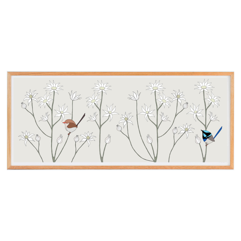 Superb Fairy-Wrens & Flannel Flowers Framed Print by Eggpicnic